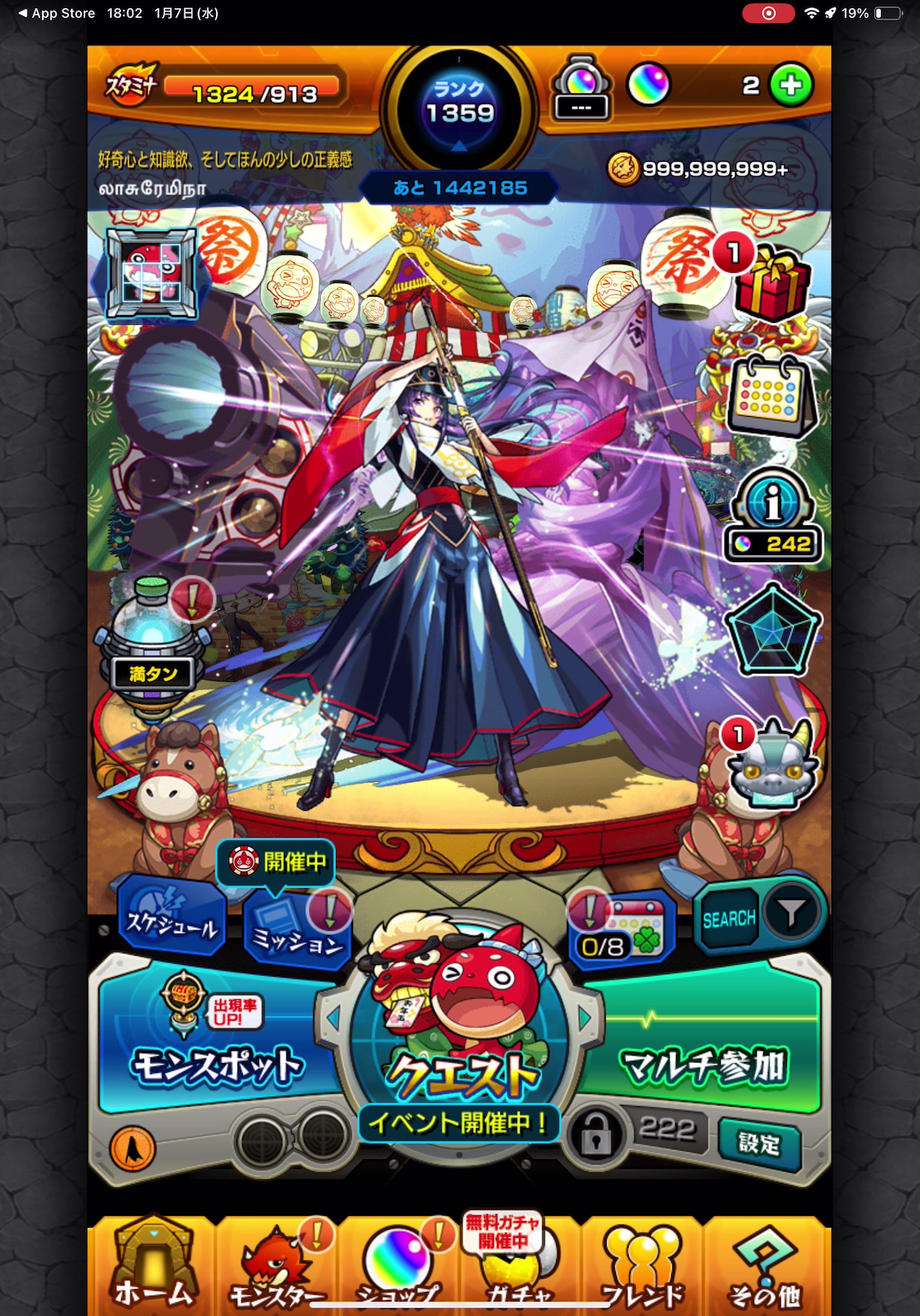 デティアカル運極で高難度の主力がすぐに使える。リンネを所持しているため、今後の高難度やイベントでも対応しやすい構成になっている。ガチャ限定の数が多く、攻略面と周回面のどちらにも幅広く対応できる。受け取り直後から安定して遊べる手持ちバランス。