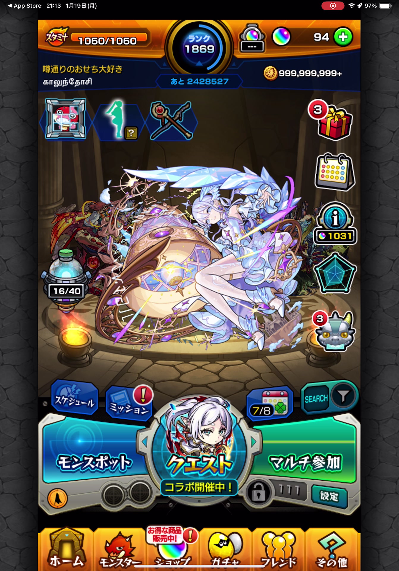 やり込み前提の高難度コンテンツを長期間かけて積み上げている。アーキレットやコルティーナなど、通常プレイでは運極にしづらいキャラをすでに所持している点が大きい。禁忌EXや黎絶も広く運極化されており、入手難度の高いキャラを“自分で作る苦労なし”で使える。